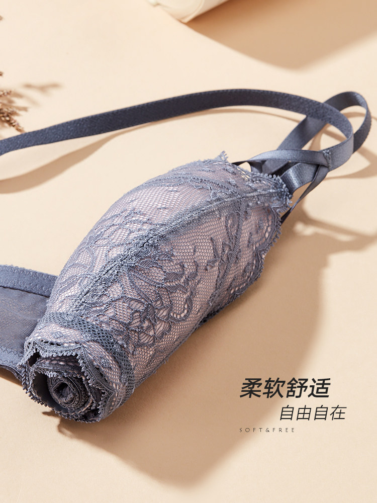 (Cut thread lace) Lanzhuoli shopping mall same style sexy underwear women's no steel ring lace bra with side breasts bra