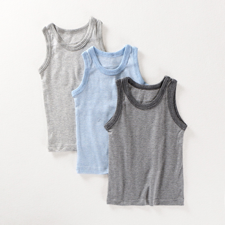 Stripe control boy baby CUHK child thin cross bar vest round collar pure cotton sleeveless T-shirt bottom blouse summer