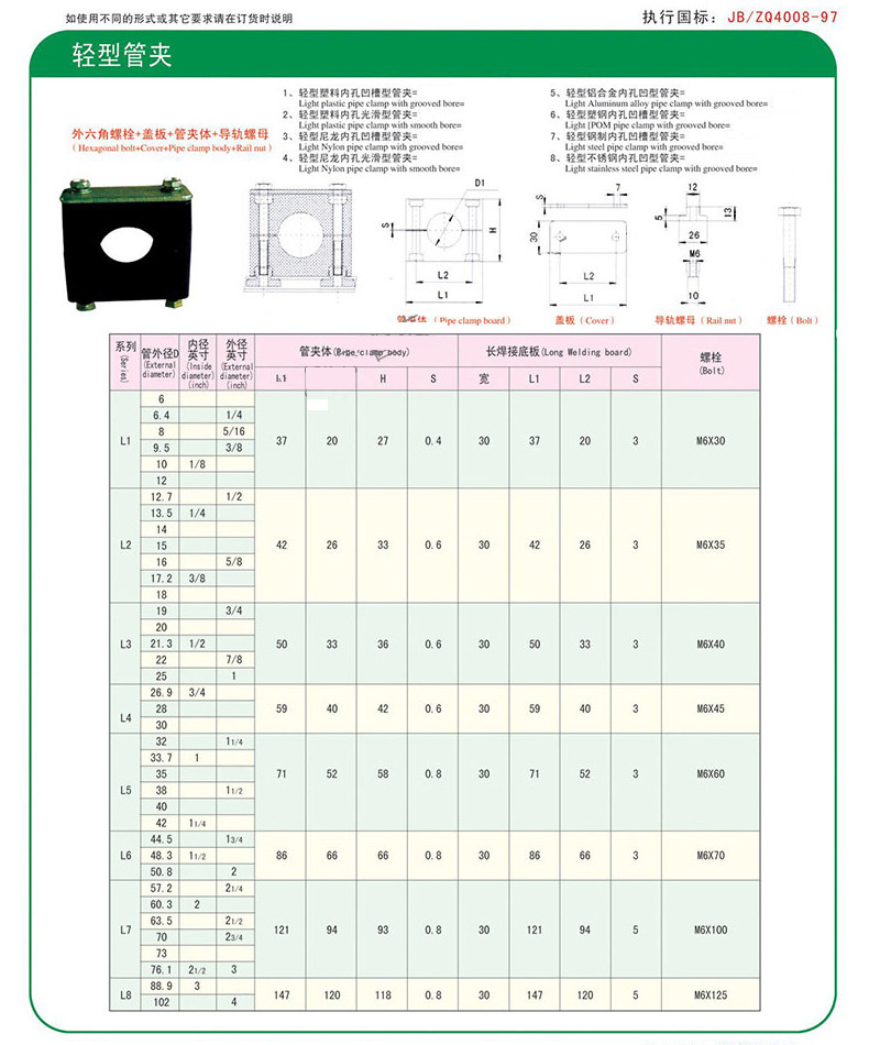 Light external hexagonal guide tube clamp in the shape of a