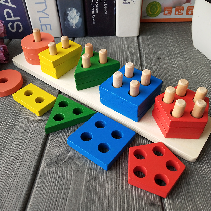 Qiaozhi wood four sets of clever wood Tetris sets of columns clever wood five-pillar shape paired with three special prices and then sent exquisite tangrams