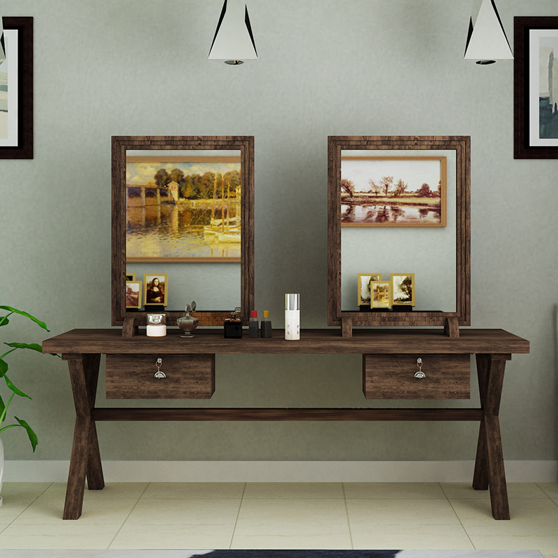 Creative Solid Wood Dresser Hair Dressing Goggles Retro Single Face Wall-mounted Mirror Hair Salon Hairdresser Bifacial Hair Mirror Table