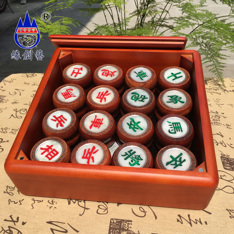 Chinese red wood chess Myanmar flower pear solid wood material natural Myanmar emerald inlaid like pawn upscale collection gift