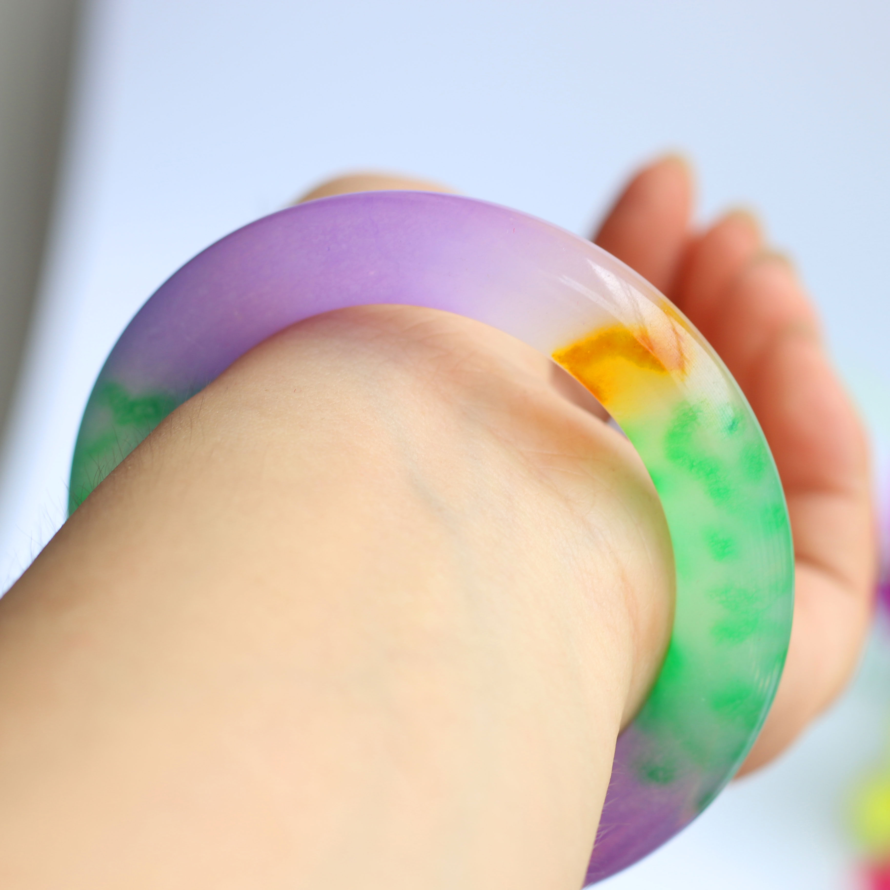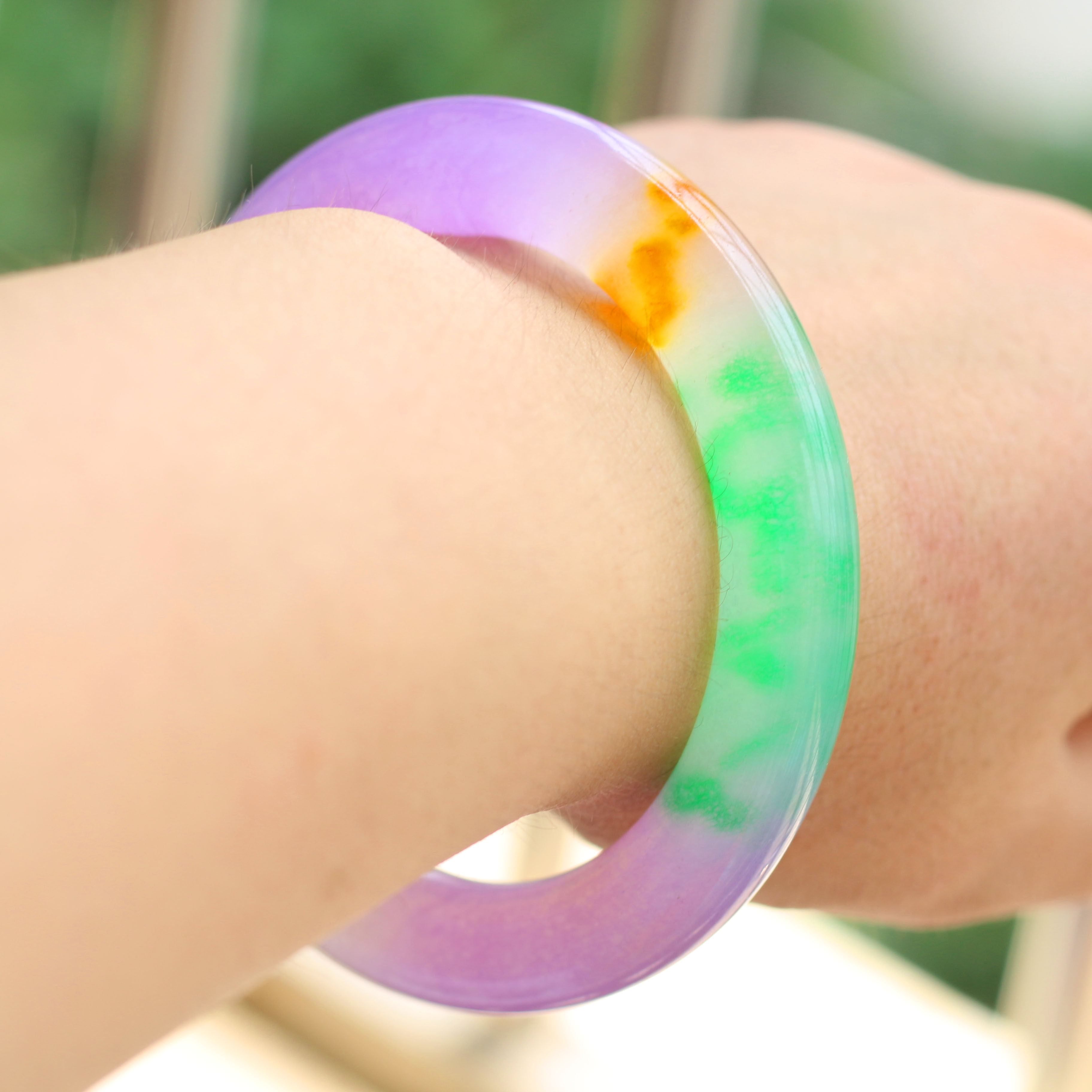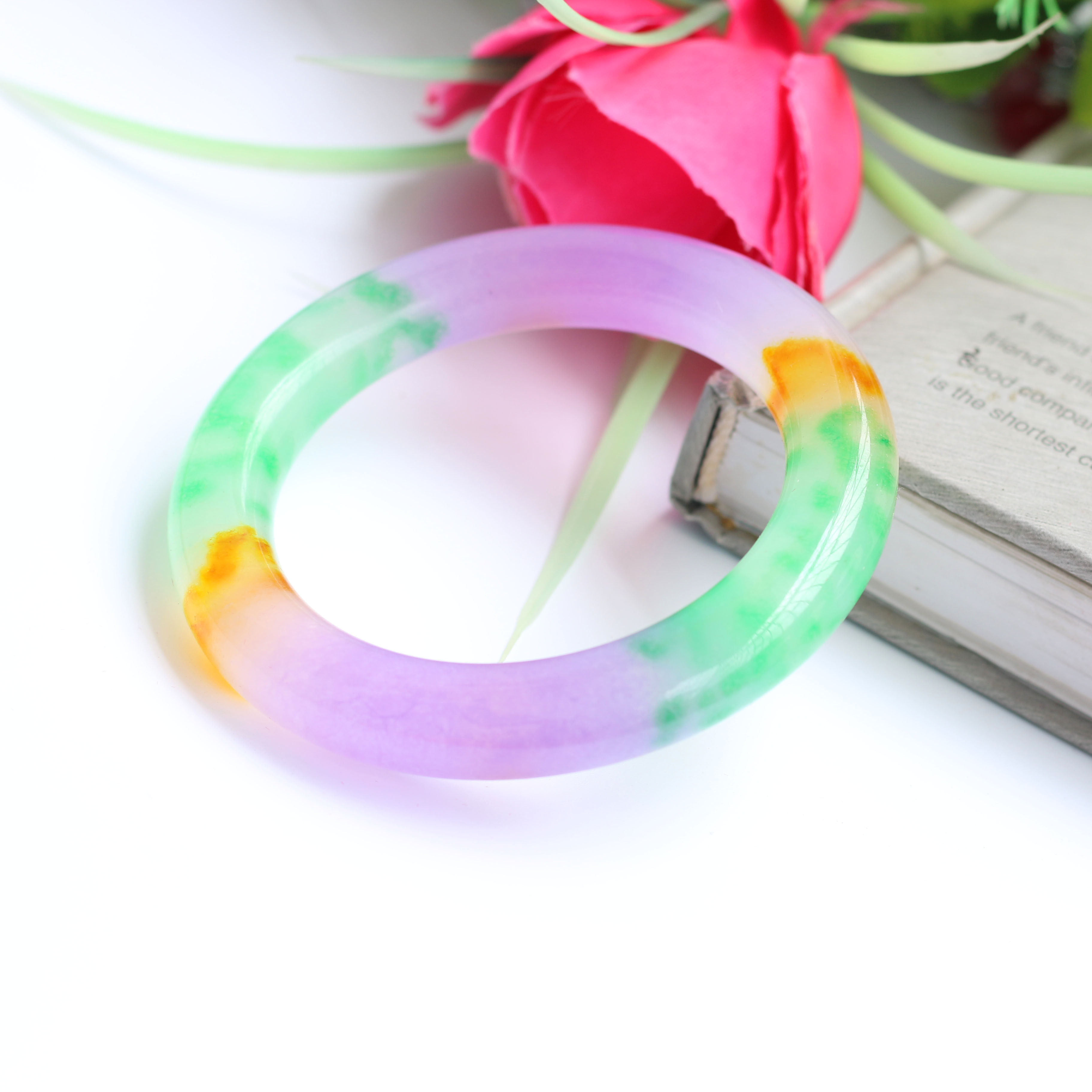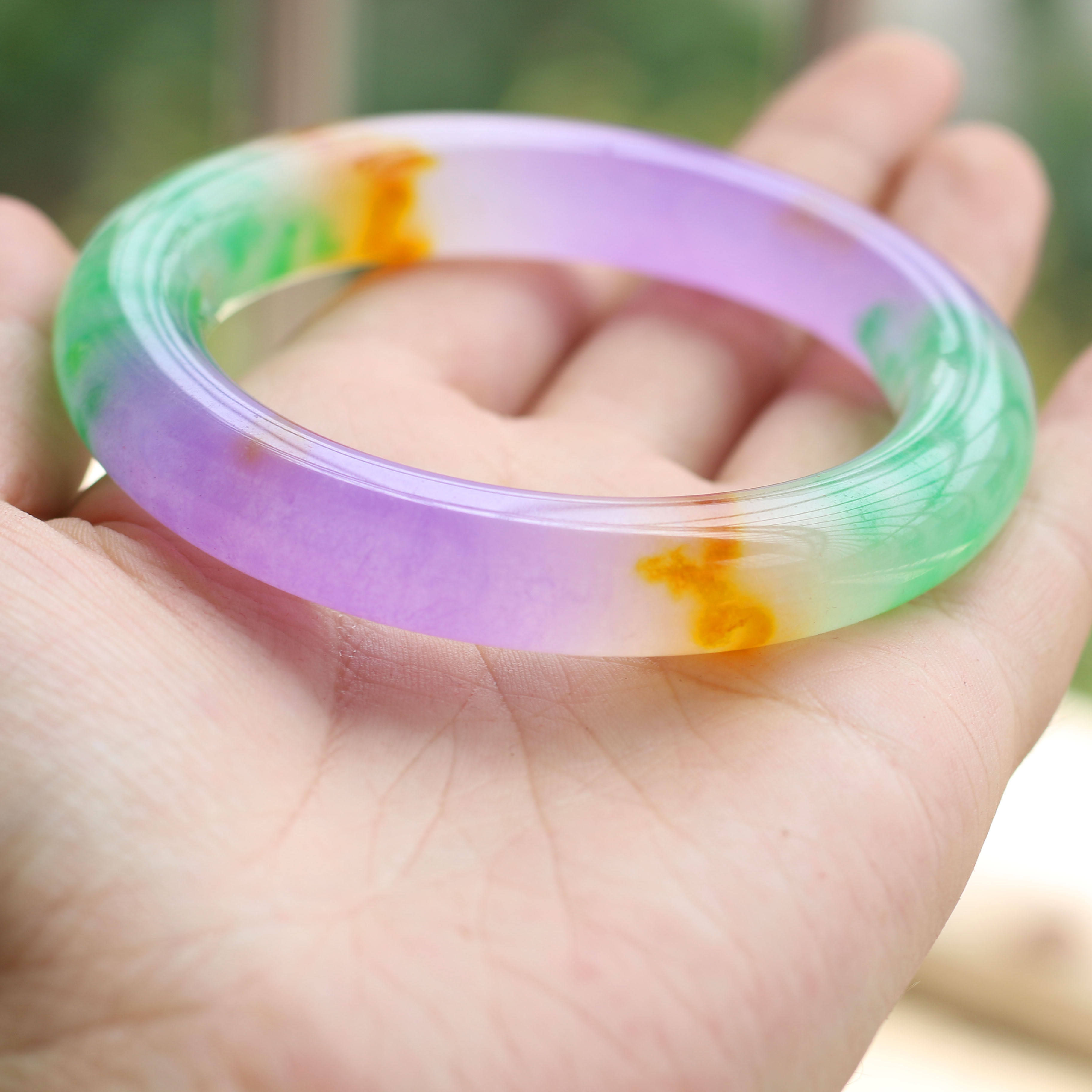 Natural Jade Five Color Ice Seed Floating Flowers Lady Jade Bracelet Emerald Color Fine Round Bar Lady Hands Ring Retro Round Bar Jade Bracelet