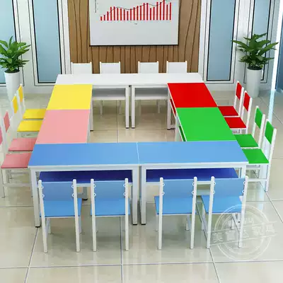 Primary and secondary school kindergarten color single and double desks, chairs and stools, hand-painted art tables, training tables, desks, computer tables