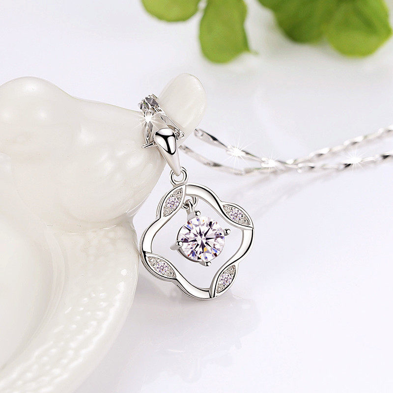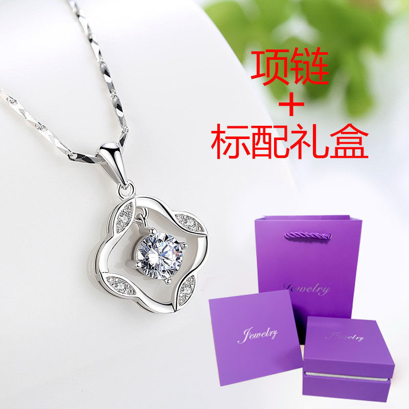 S999 Foot Silver Four-leaf Grass Necklace Girls Sterling Silver Clavicle Chain Japanese and Korean Smart Jewelry to Send Girlfriend Birthday Gift