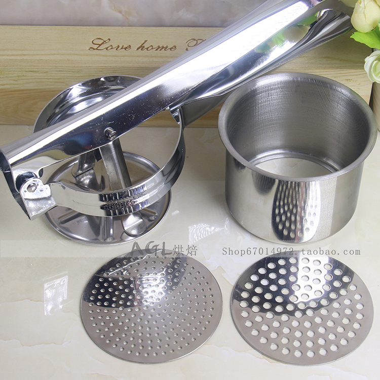 US Stainless Steel Mashed Potato Press Masher Melon Fruit Juice Potato Press Replaceable mesh