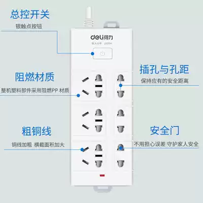 Dili new national standard socket power plug wiring board 6 8 10-hole multi-function socket socket household