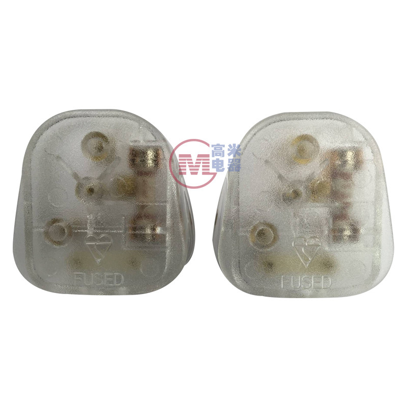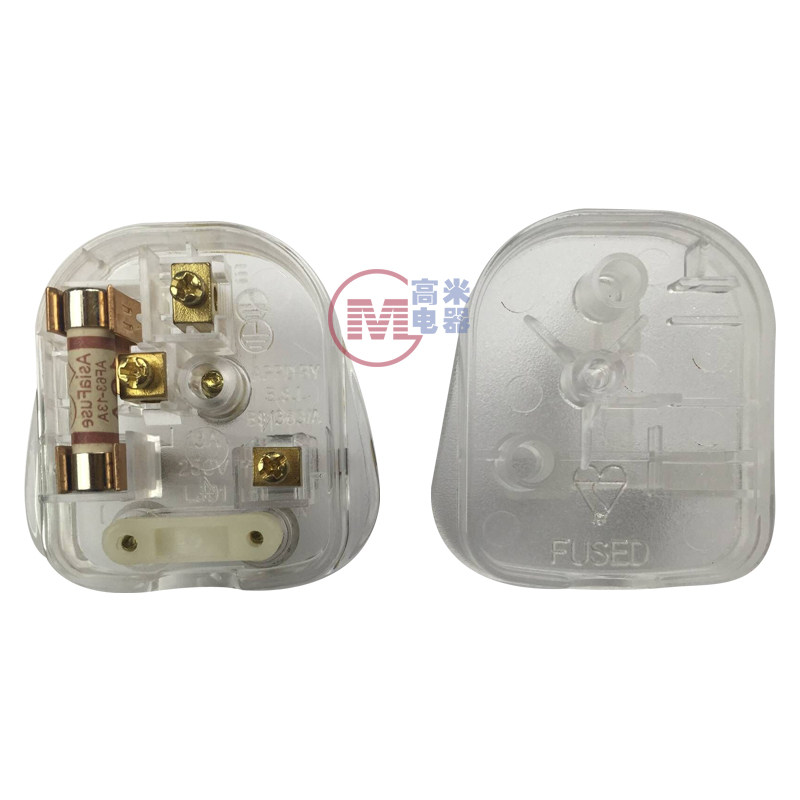 13A English Premier Inregularity Hong Kong style three-footed square head transparent plug BS1363 certified with FUSED insurance tube