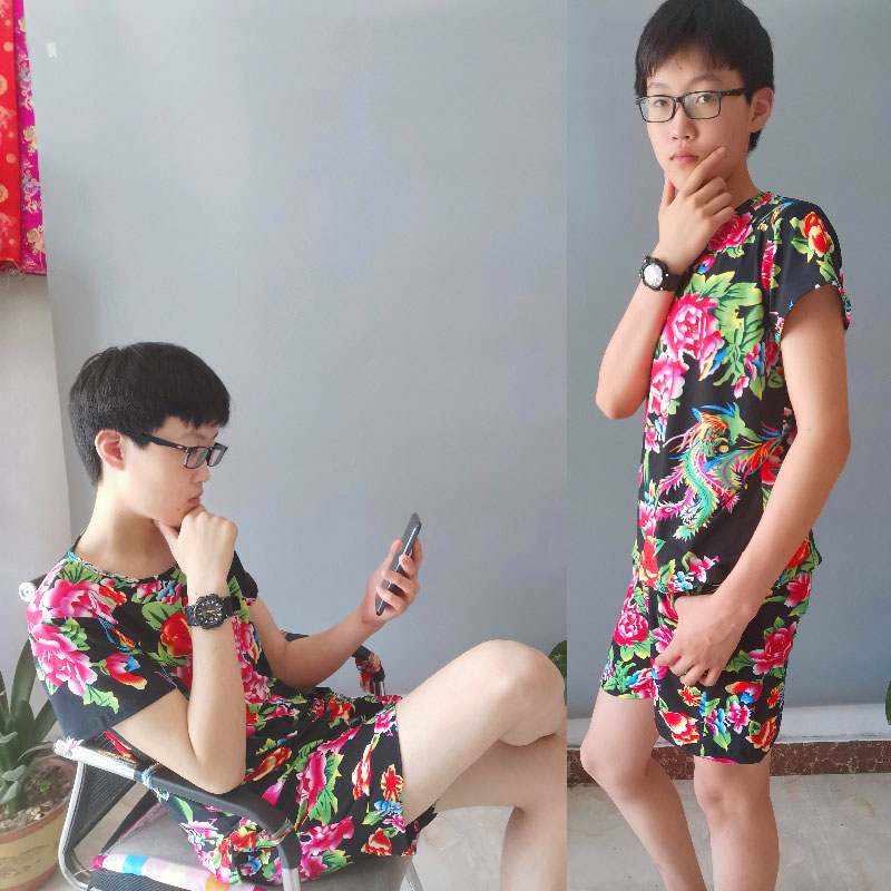 Men's Short T-shirt suit round-collar Northeast big blouse beach shorts cotton silk casual shorts and leisure student clothes