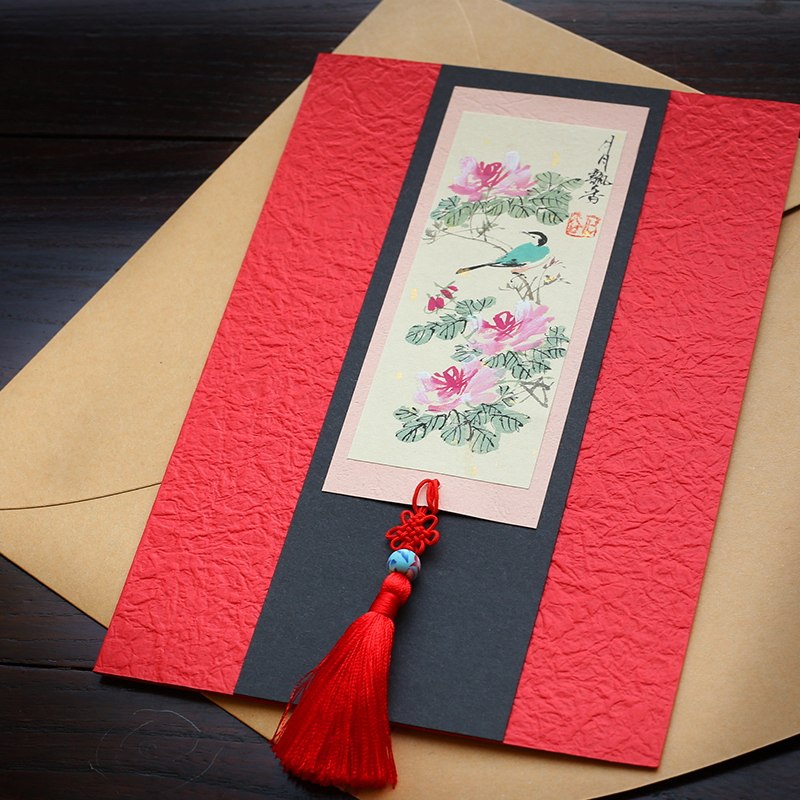 Limited Hand Plotter Country Painting Greeting Cards Birthday Sending Elders Leaders Wishing Birthday a Chinese Wind Father's Business Invitation Letter Customized