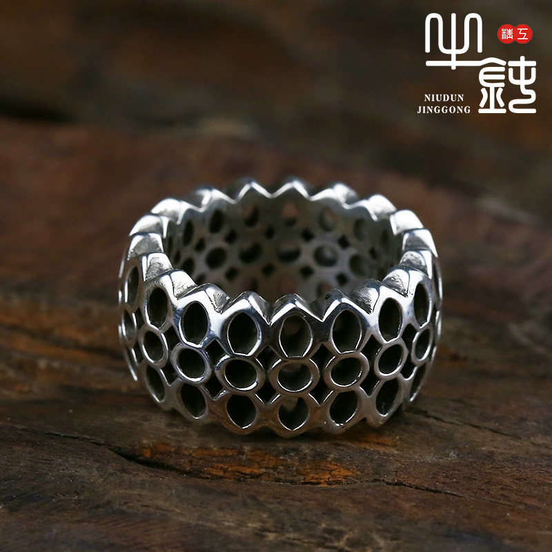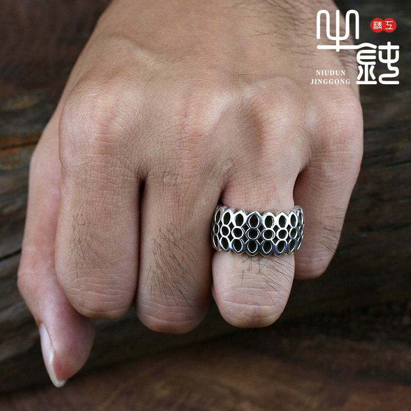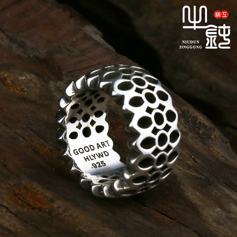 Niu blunt Seiko good art multi-eye ring hollow cherry blossom ring rocklock925 sterling silver engraving