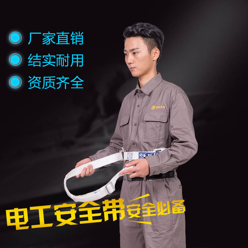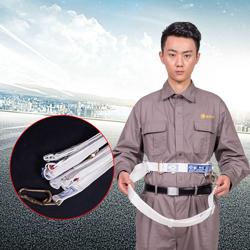 White electrician seat belt aerial work belt around pole with power single safety rope outdoor installation and maintenance air conditioner