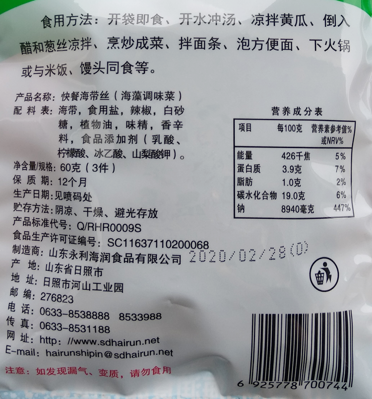 Mountain East China moisturizing fast food kelp silk open bag ready-to-use old dry kelp vegetables 80 back nostalgic as a child