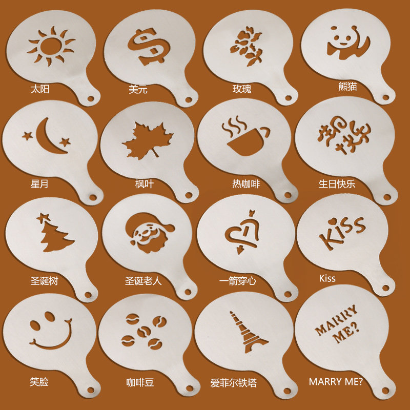 Koonan stainless steel coffee flower mold fancy pattern printing die flower artifact powder powder mold milk tea
