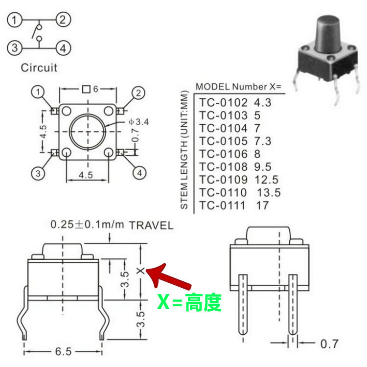 Light switch vertical 6*6*4 3 4 5 5 6 7 8 9 10 11 12 13 Induction cooker button 4 feet