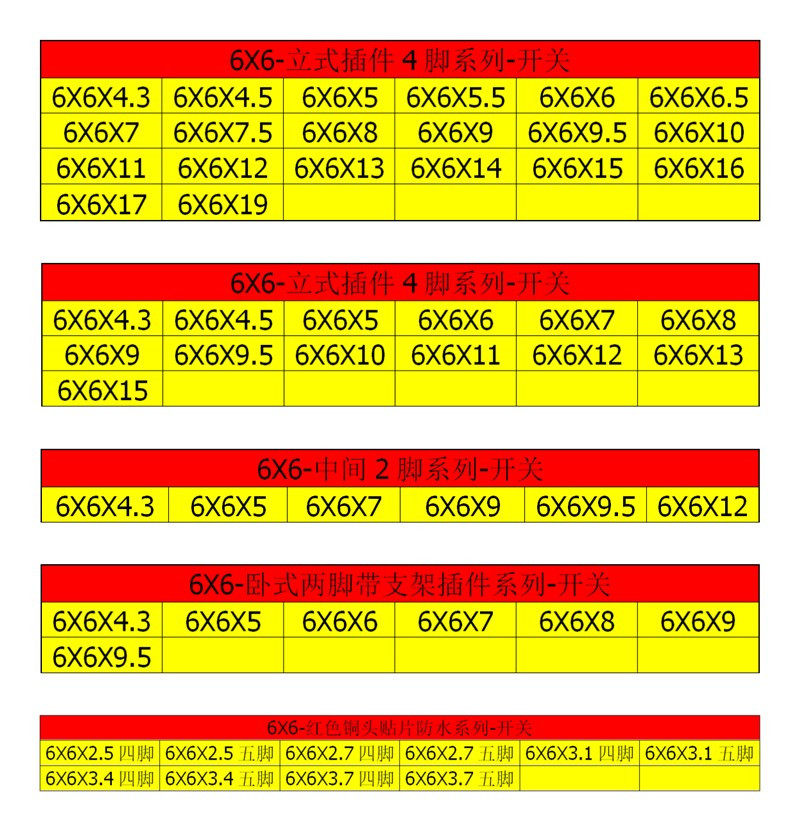 6*6*4 3MM (50 PIECES) 6*6*4 5MM (50pcs) 6*6*5MM (50pcs) 6*6*5 5MM (50 PIECES