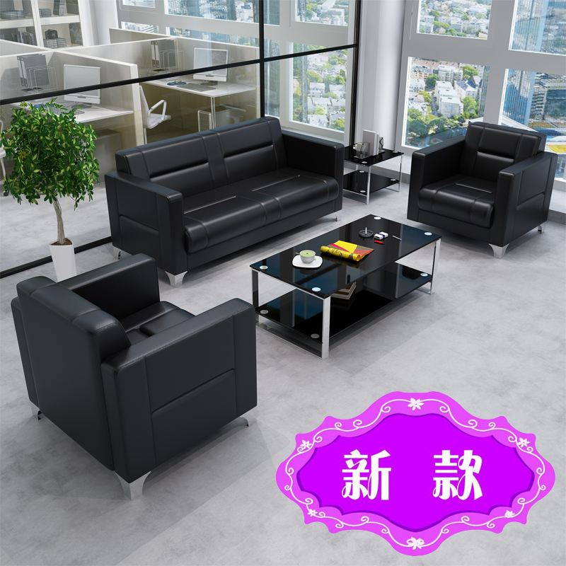 Real Leather Sofa Office Sofa Tea Table Combo Guests Business Reception Office Sofa Minima Modern Sofa
