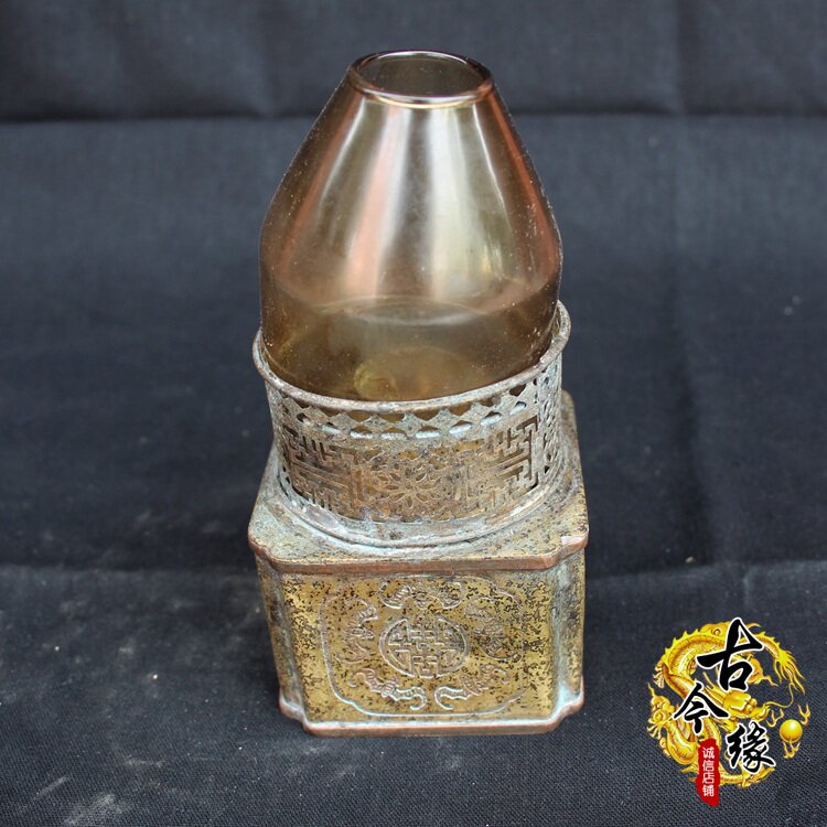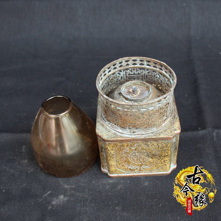 New antique bronze Pure copper antique old goods hollow old oil lamp Home retro craft decoration collection ornaments
