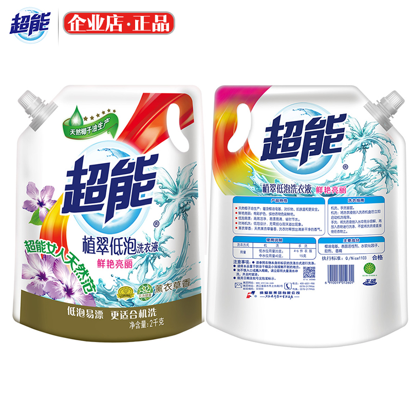 Super Energy Laundry Liquid 2kg * 2 Bags Preferential Combination Planting Cui Low Soaking Lavender Flavor 8kg Machine Lotion