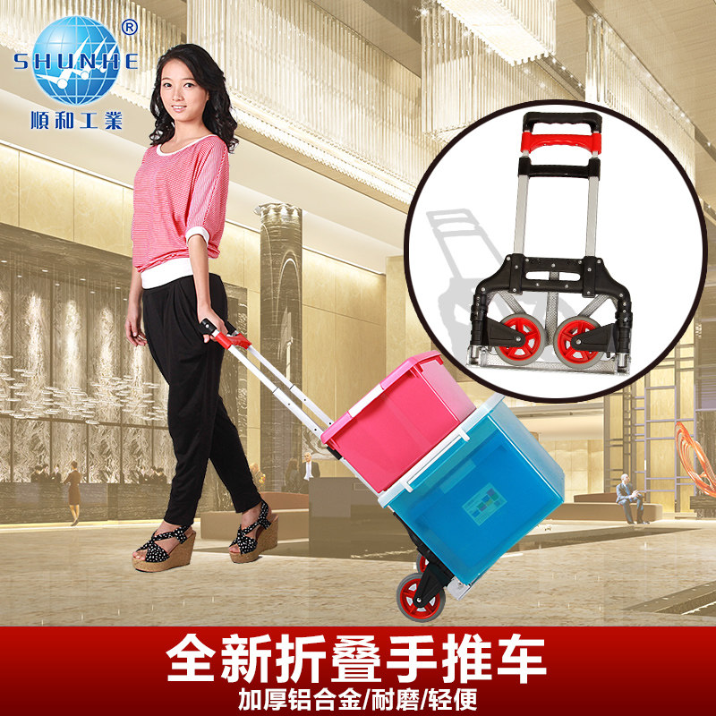 Aluminum alloy grocery shopping cart Trolley portable pull rod hand pull folding shopping luggage cart trolley handling