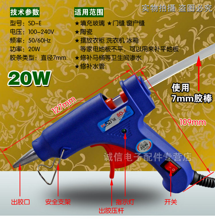20W 100W hot melt glue gun High-end with switch indicator light 7mm 11mm hot melt glue stick Hot melt adhesive strip