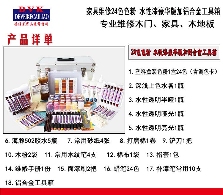 Home Furniture Repair Beauty Material Toner color Water Packaged with 24 Color Water Lacquered Luxury aluminum alloy box