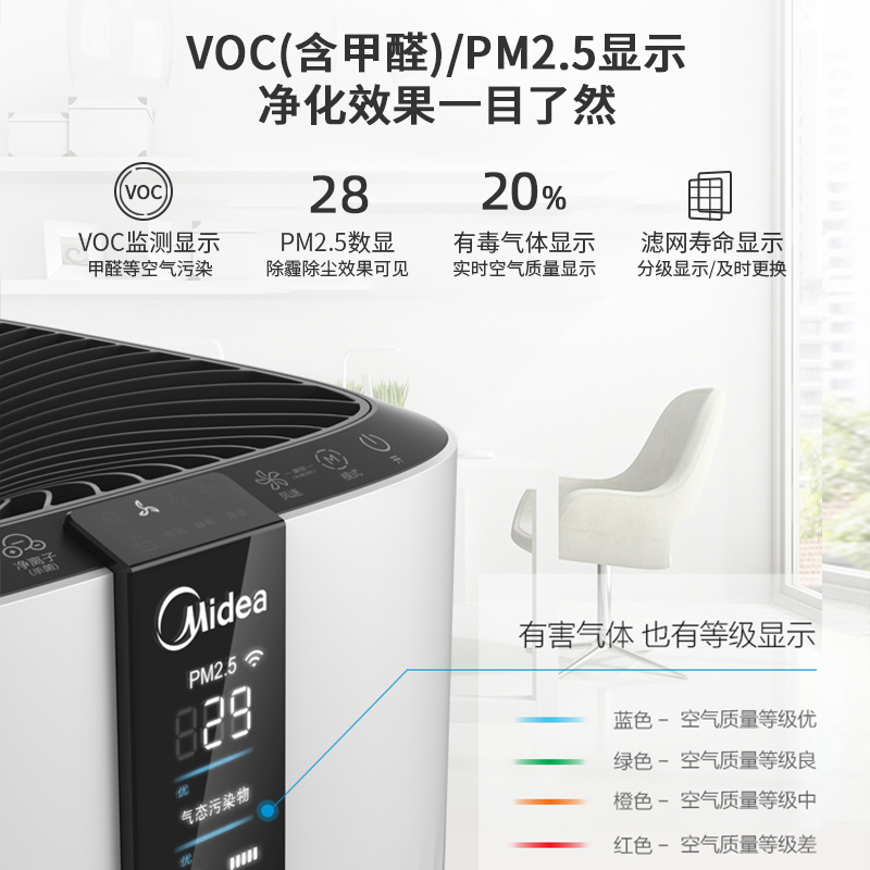 Midea air purifier Household bedroom in addition to formaldehyde smoke haze bacteria Office smart home appliance purifier H32