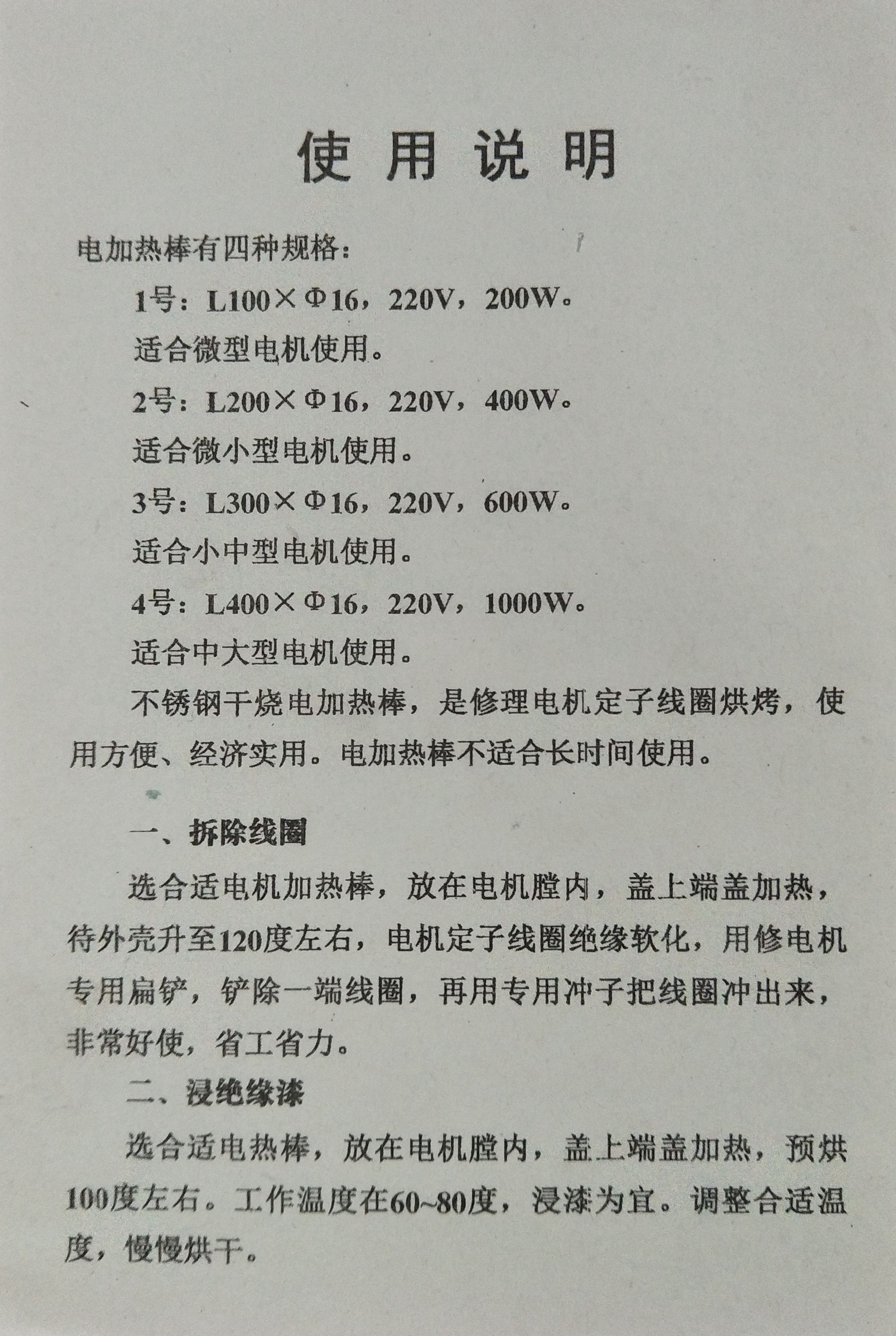 Stainless Steel Motor Heating Rod Single Head Heating Tube Motor Unwire Drying Baking God Instrumental Motor Repair Tool