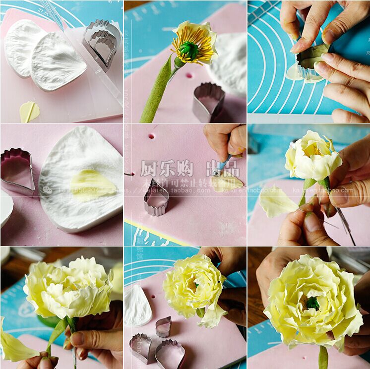 Fondant peony flower mold Stainless steel cutting mold petal fondant silicone mold Dry pace vein pattern mold