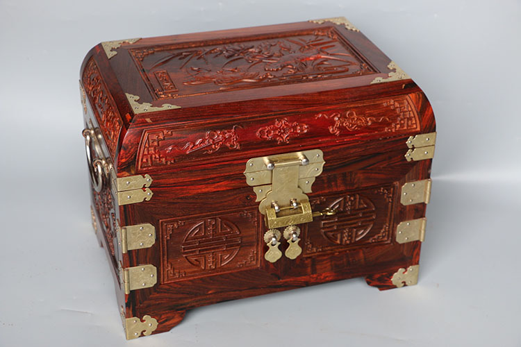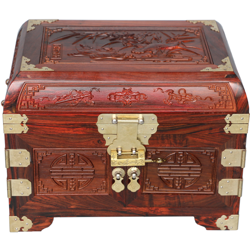 Mahogany jewelry box big red sour branch whole single board finely carved figure jewelry dressing solid wood new Chinese retro jewelry box