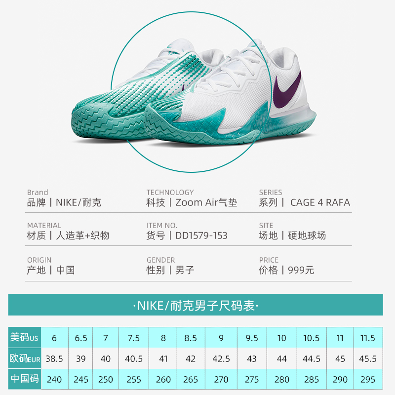 Nike Nike Nadal Australian tennis shoes men's and women's new Court Vapor Cage 4 sneakers DD1579
