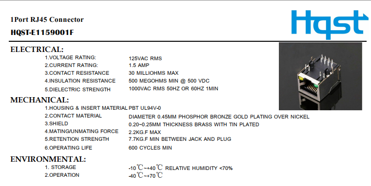 RJ45 59 HR911105A network connector 110A with lamp with shielded network interface crystal head plug female seat