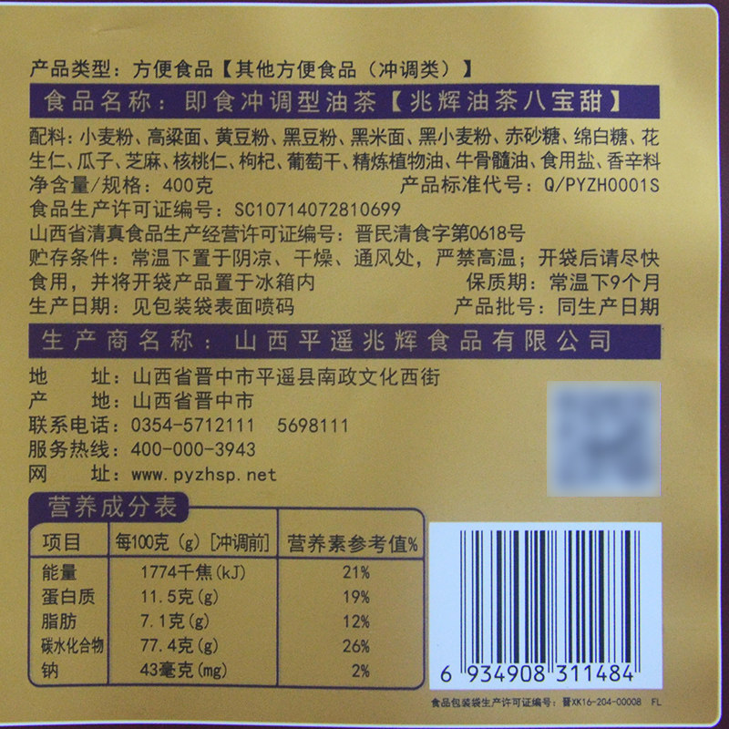 Pingyao one trillion glow Eight precious sweet oil tea 400g * 2 bagged oil tea noodles Washed Drink Ready-to-eat Shanxi Secret