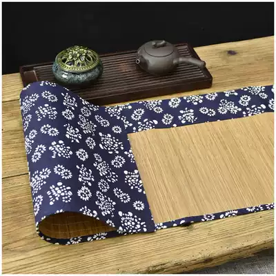 Edging bamboo tea mat Linen Zen fabric Chinese style retro table flag Tablecloth Bamboo tea mat coaster Tea ceremony insulation