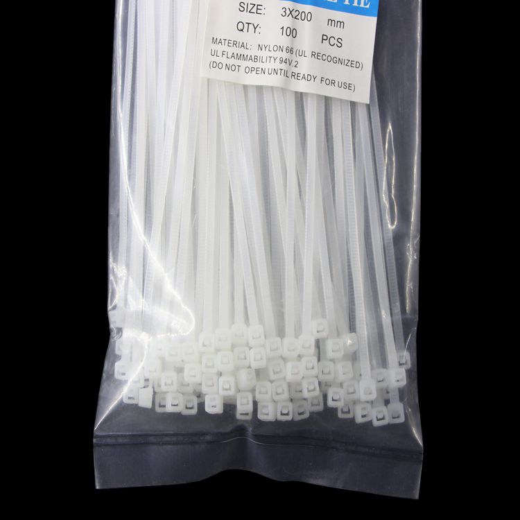 3*200mm plastic self-locking white nylon cable tie holder buckle 100 straps One pull strap