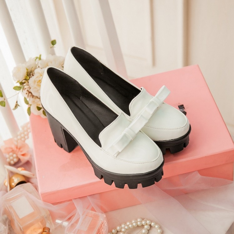 Universal bright patent leather large size pseudo-mother cos shoes thick high-heeled shoes cd cross-dressing women's clothing gangster supplies Lolita