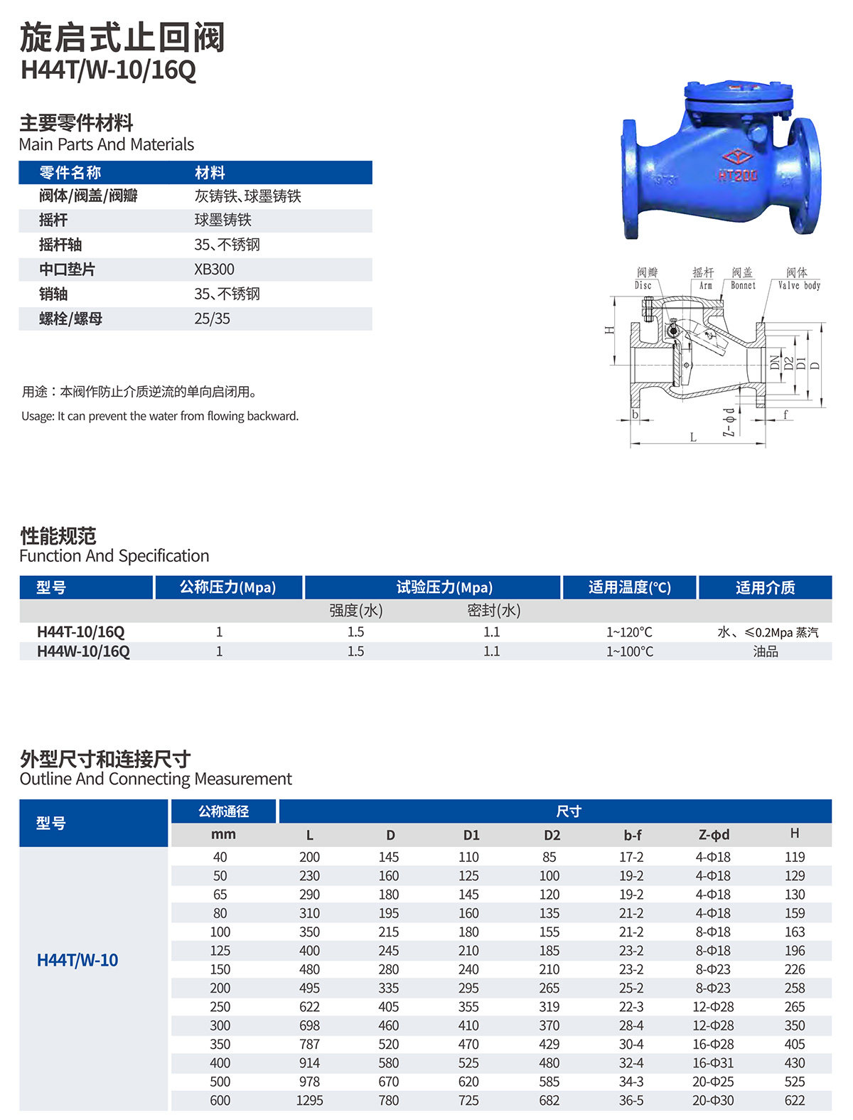 Yuanda valve Yao word swing check valve check valve one-way valve H44T-10 16 DN40~600