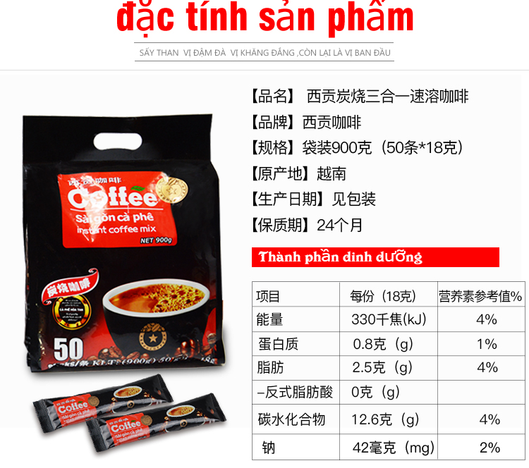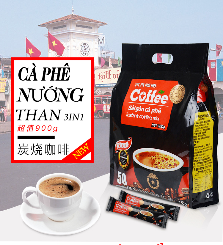 Vietnam imported Saigon coffee three-in-one charcoal-burned instant coffee powder 900g 50 sticks