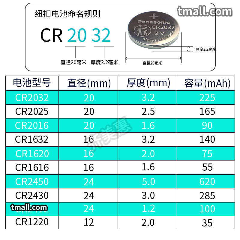CR2032 Two Pieces CR2025 Two Pieces CR2016 Two pieces CR1632 Two pieces CR1620 Two pieces CR1616 Two Pieces