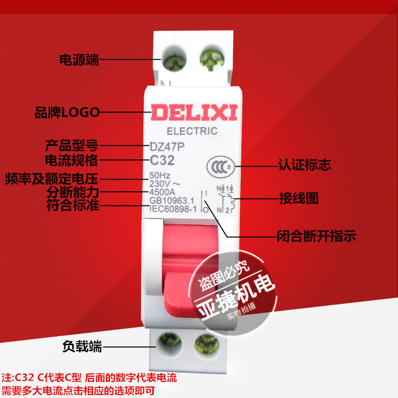 Delixi circuit breaker DZ47P C10 C16 C20 C32 1P N 10A 16A 20A 32A empty open