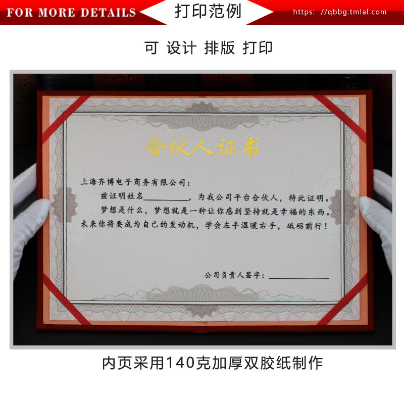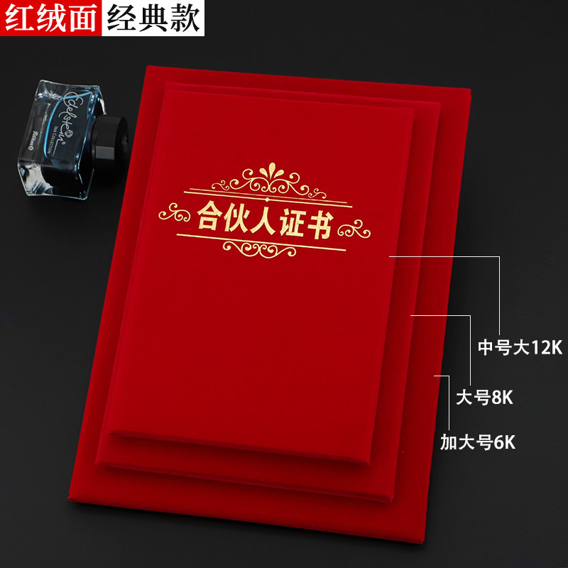 Qiheng red suede A4 founding partner certificate shareholder investment partnership certificate joining shares equity cooperation shareholding agreement venture distribution cover gilded shell honorary letter of appointment