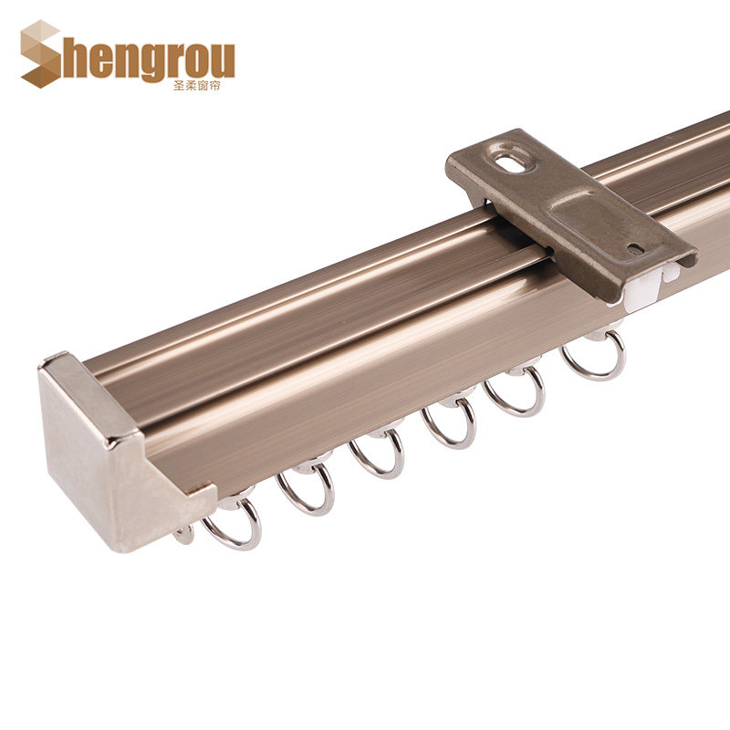 Curtain rail straight rail aluminum alloy square rail mute single and double rail curved rail curtain rod top-mounted side-mounted bay window