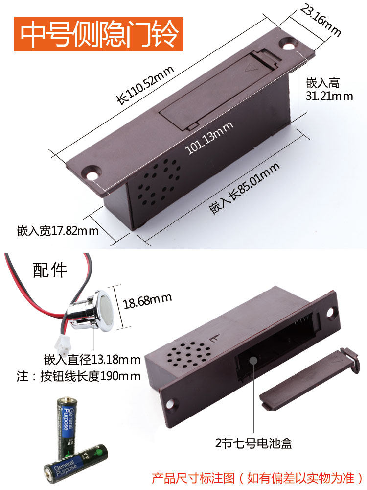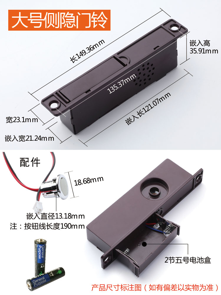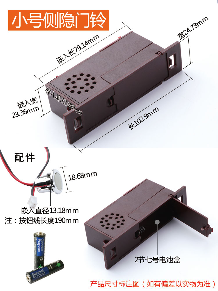 Old-fashioned security door wired doorbell Invisible household side doorbell with button to send battery Ding Dong sound universal doorbell