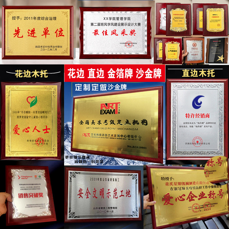 Gold foil medal custom-made wooden support authorization bronze medal wooden honor certificate sand gold stainless steel medal trophy