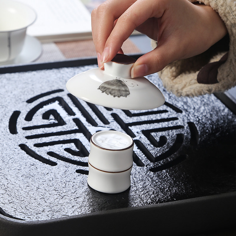 Green Porcelain Fat White Cover Bowl Tea Cup Tea Bowl big number tea set Jingdezhen Qing flower Porcelain Tea Bowl ceramic white porcelain Three-only cover bowl