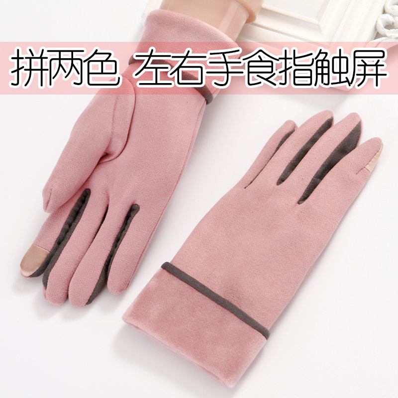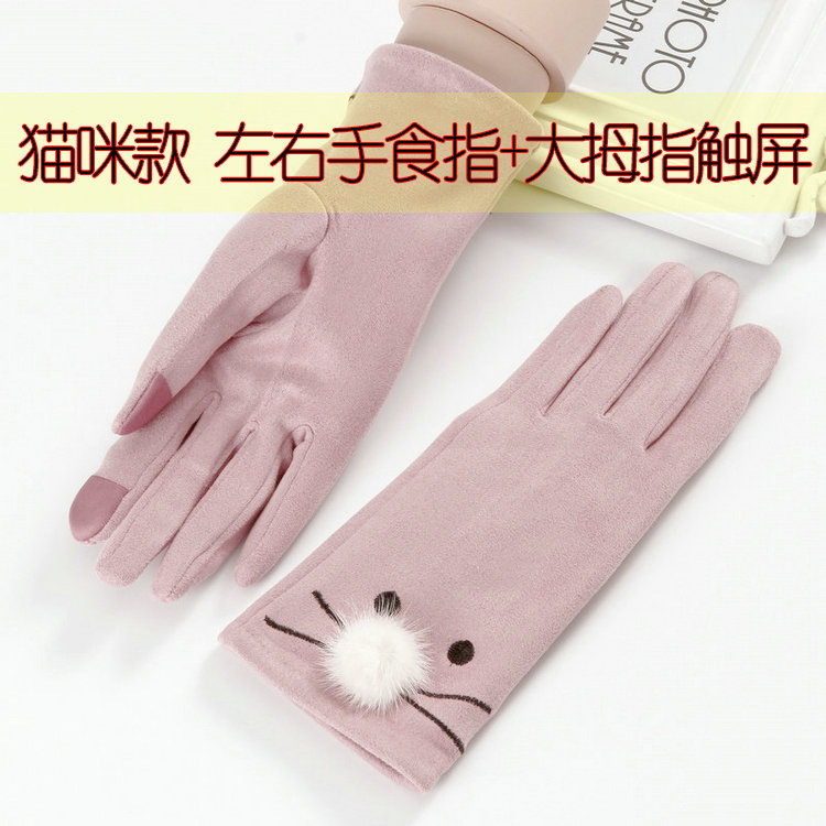 Gloves Lady Autumn Winter Korean Edition Student Cute Day Ensemble Thin riding winter Gardown bicycling with five fingers warm