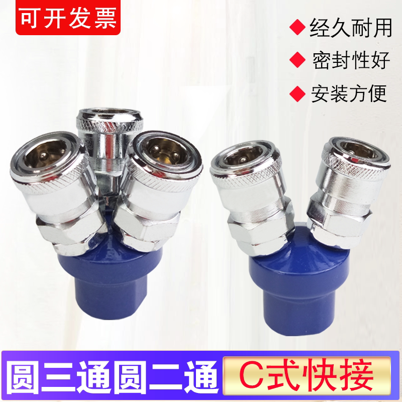 Pneumatic C-style self-lock quick joint tracheoround tee-two-through insertion claw tool air compressor quick-insert accessory