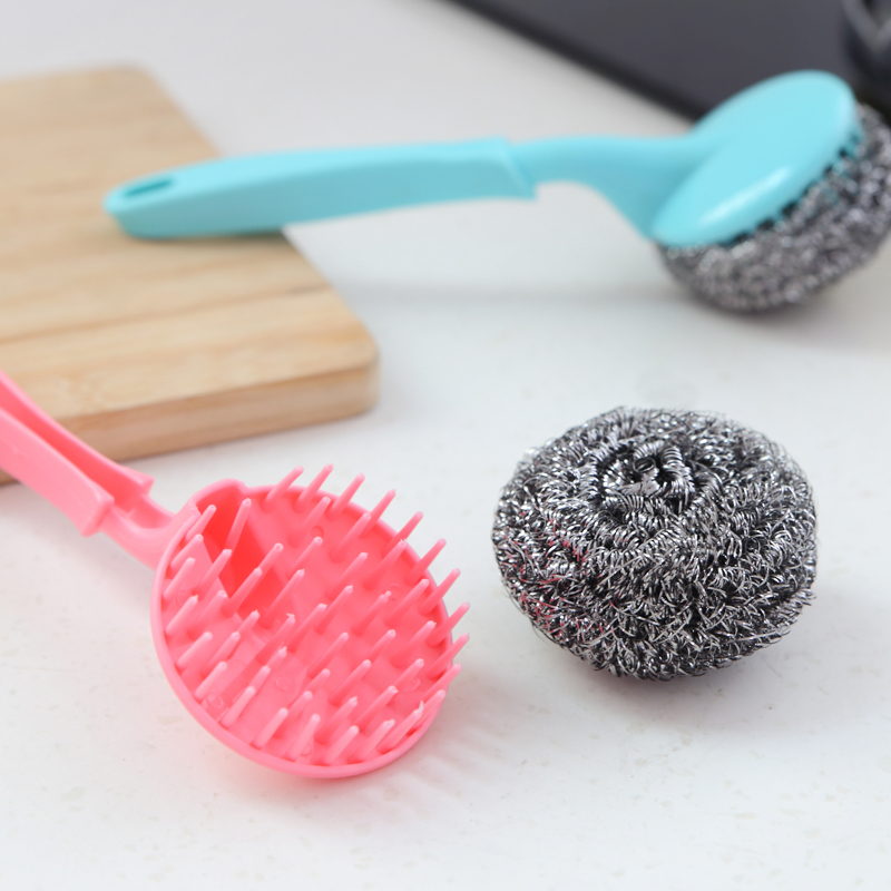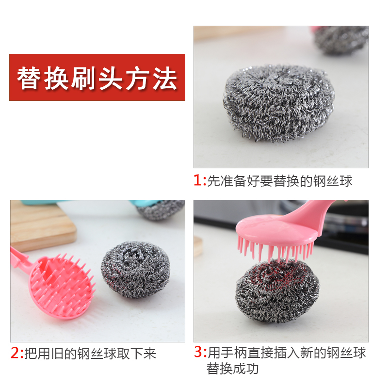 With Handle Wash Pan Brush Kitchen long handle stainless steel dishwashing pan Iron Wire Ball Clean Ball Steel Wire Haircut