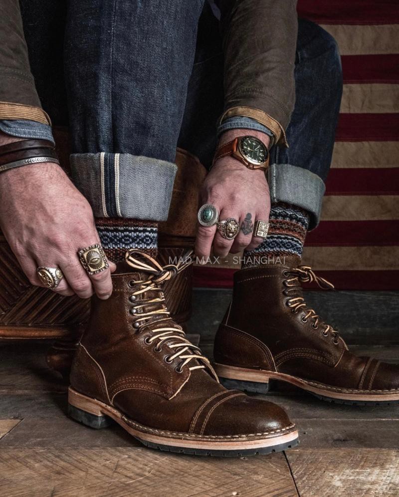 () WHITES BOOTS HORWEEN OIL WAX LEATHER TEA CORE TOOLING BOOTS