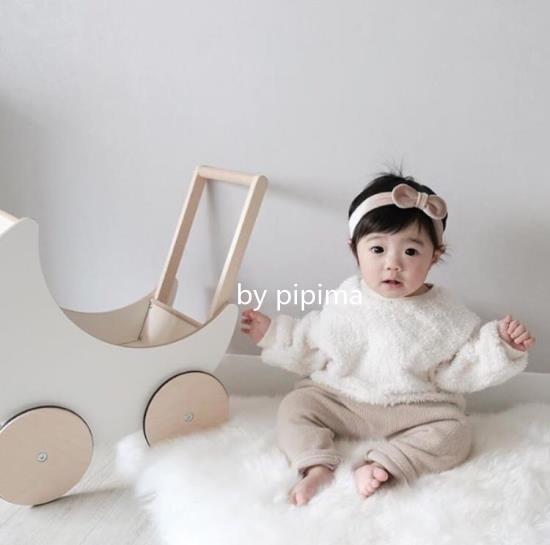 Fart Mom ins Explosive Wooden Toy White Moon Shape Trolley Baby Toddler Toy Toy Take a Photo